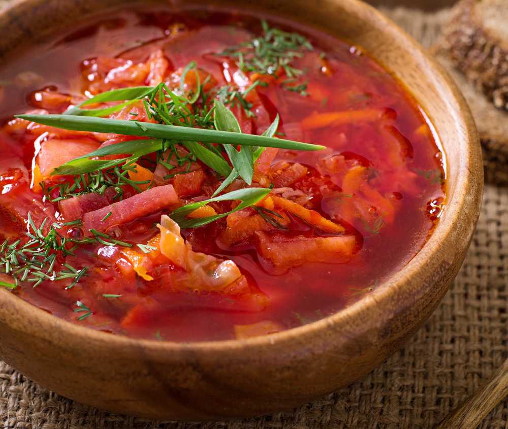 Интересно! Красный борщ — это национальное блюдо восточных славян, которое готовится с добавлением красной свеклы. Чаще всего в книгах рецептов упоминается украинский борщ, но его также готовят и в Белоруссии, и в России, и в Польше. О нем известно с незапамятных времен. И в знатных сословиях, и среди крестьян, монахов, военных, это первое блюдо было невероятно популярно. В каждом веке состав блюда претерпевал изменения. Так, например, картофель стали добавлять в борщ только в 19 столетии. И готовили в основном, без мяса.
