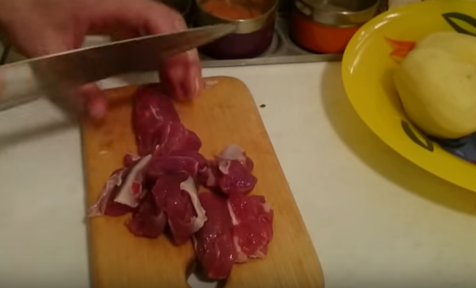 - Затем подготавливают мясо: режут его на кусочки среднего размера.