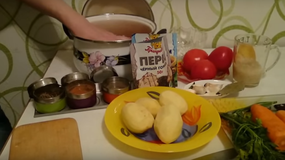 Очередное кавказское блюдо в нашей подборке, которое легко готовить, что большой плюс. Нам нужно: 800 гр мяса (баранина, само собой), 6 средних картофелин, 2 луковицы, 2 моркови и 2 зелёного салатного перца, пол кило помидоров, чайная ложка паприки, столько же хмели-сунели, соль и перец по вкусу.