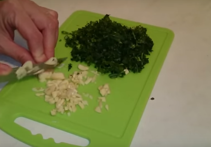 - Орехи нужно измельчить, добавить их к блюду и перемешать. Завершающий штрих – рубленая зелень петрушки.