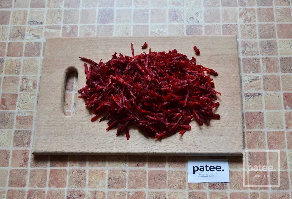 Далее, натрите на крупной терке или нарежьте соломкой свеклу.