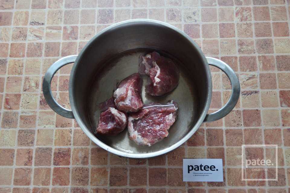 Начиная готовить, нам необходимо поставить вариться мясо. Делается это по стандартной для всех первых блюд процедуре.