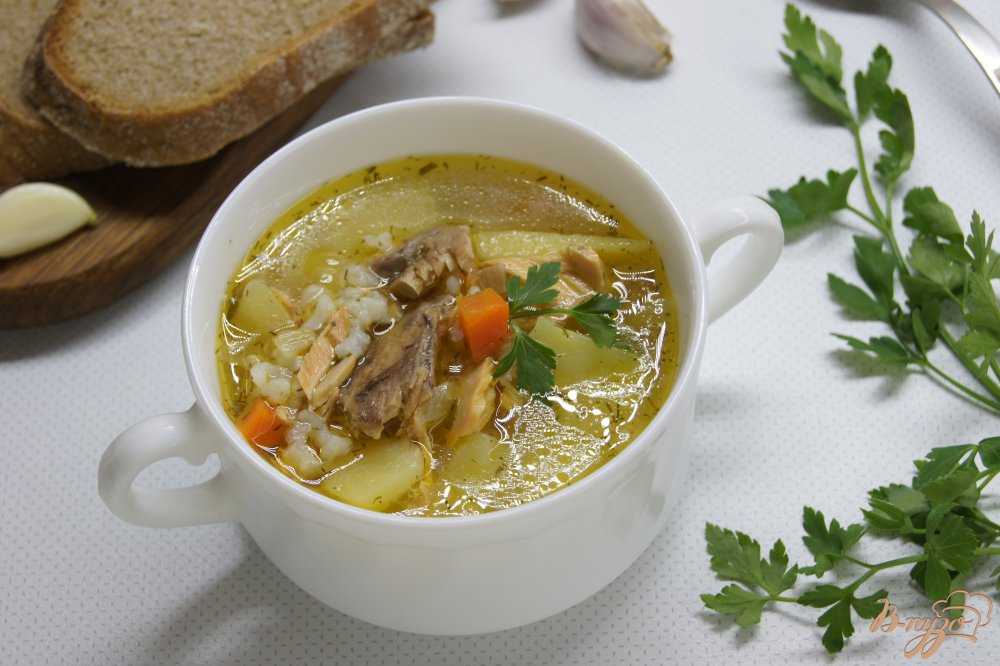 - Перловку лучше сварить или просто залить кипятком заранее и отдельно. Тогда суп будет прозрачным, а время приготовления сократится.
