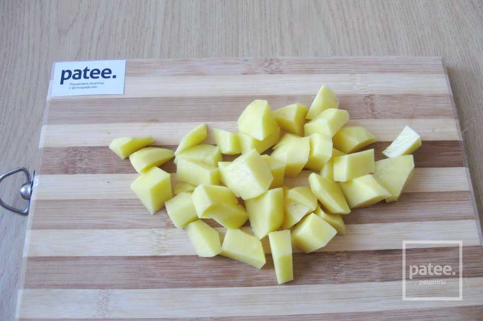 Картофель очищаем, моем и нарезаем небольшими кубиками.