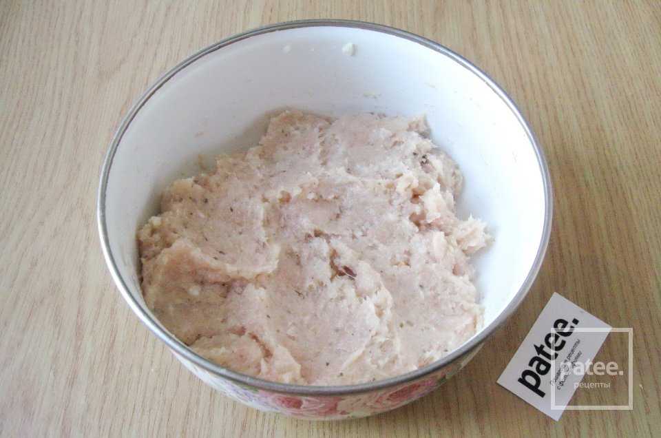 Мясной фарш, лук и белый батон взбиваем блендером или пропускаем через мясорубку. Солим и перчим по вкусу. Основа для фрикаделек готова.