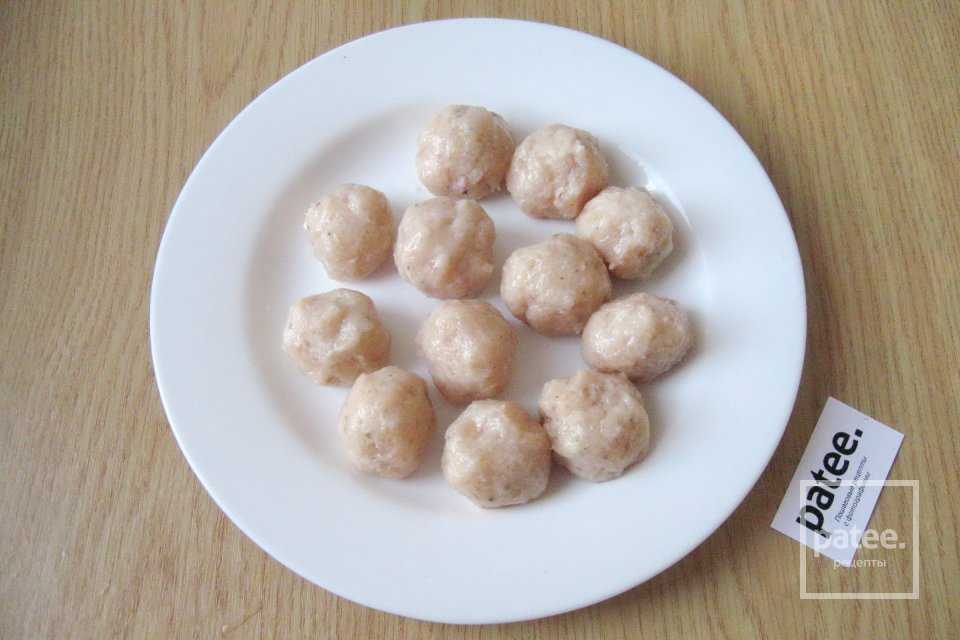 Мокрыми руками формируем из фарша фрикадельки размером чуть больше грецкого ореха.