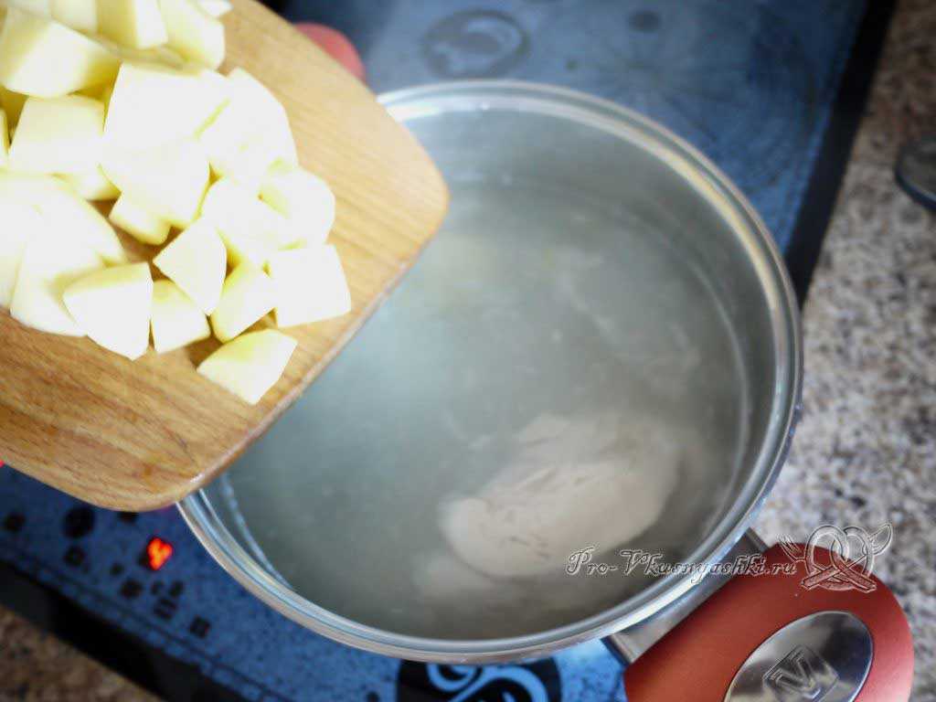 6. После этого добавьте нарезанный картофель и варите еще около 10-12 минут.