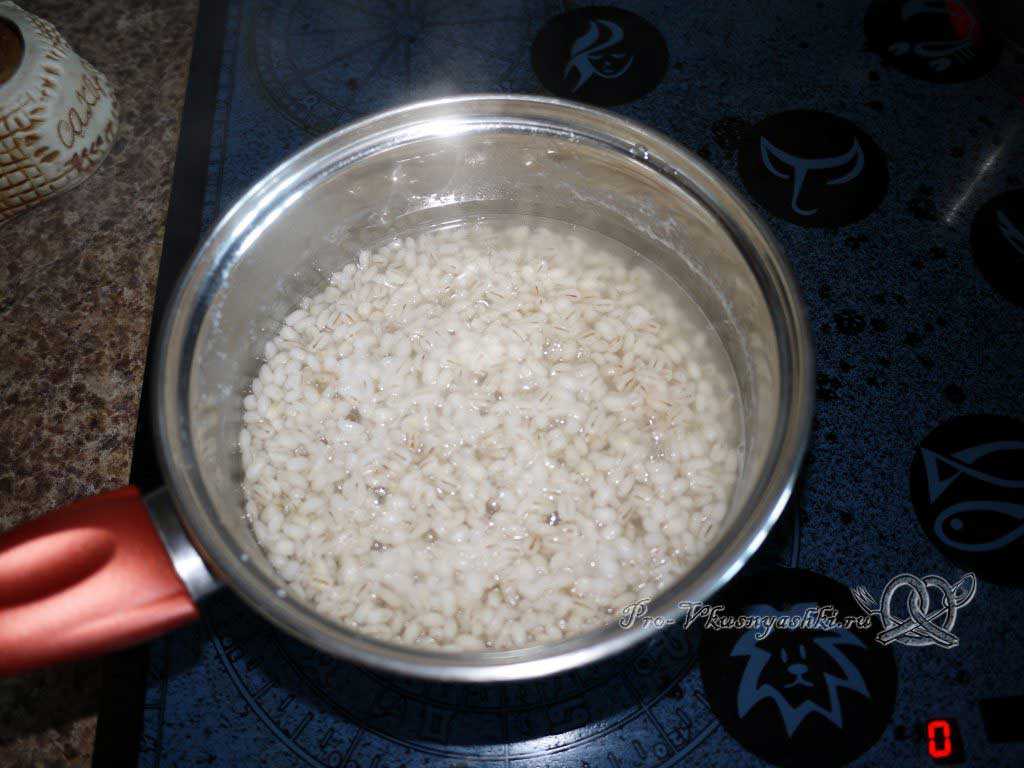Перловку перебираем и промываем от пыли под краном.