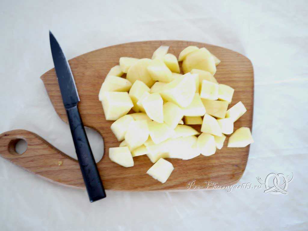Картофель нарезаем крупным или средним кубиком.