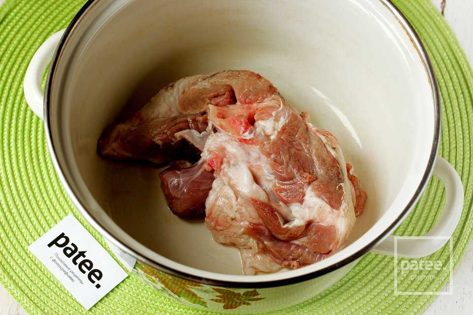 Мясо промыть, срезать все прожилки и отварить в течение получаса.