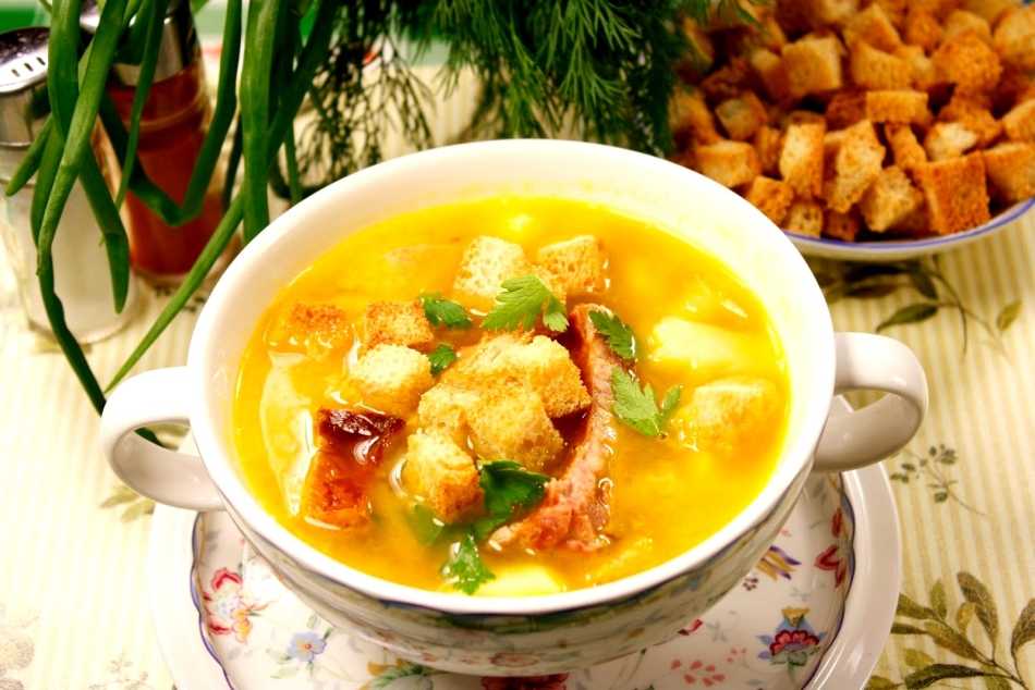 Как приготовить суп гороховый с подкопченными мясными продуктами и тыквой?