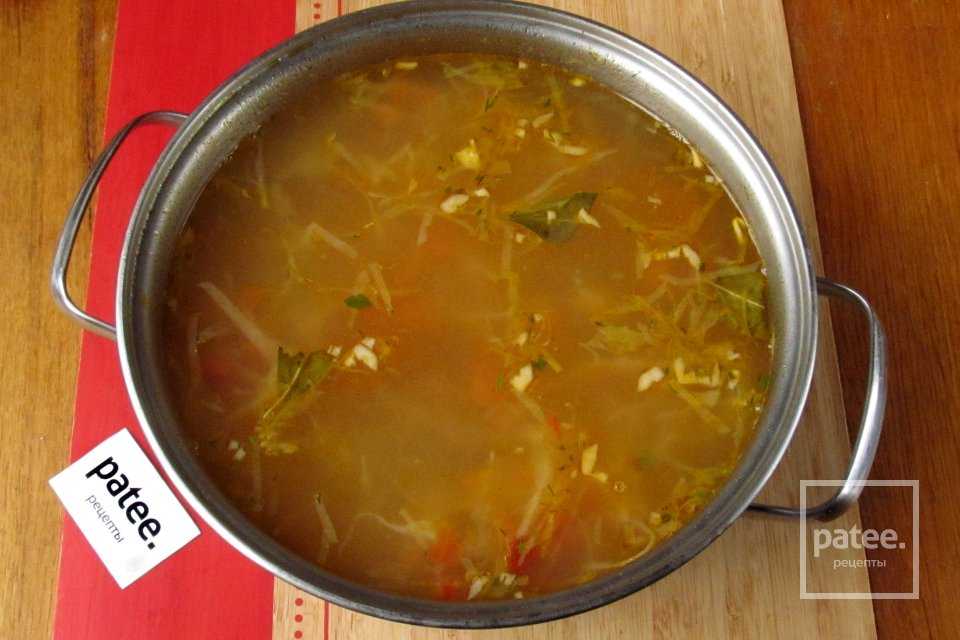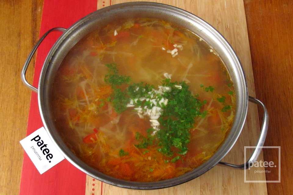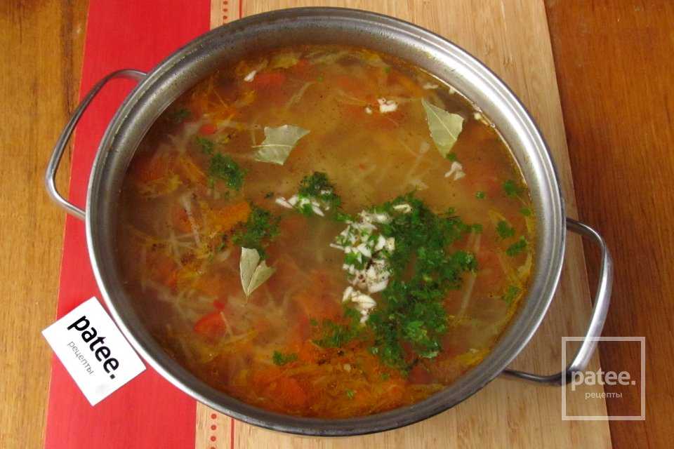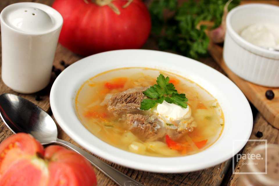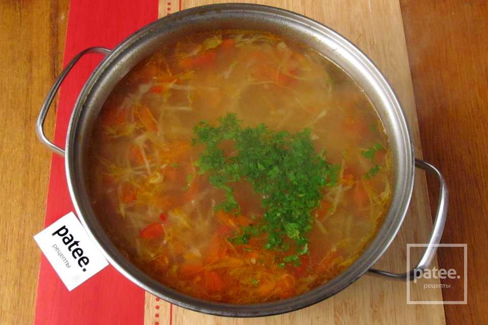 Томатный суп с говядиной, пшеном и свежей капустой
