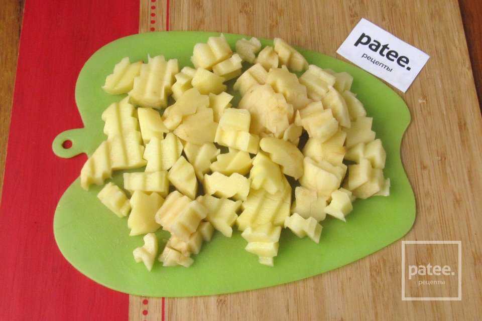 Картофель очистить и нарезать небольшими кубиками или брусочками.