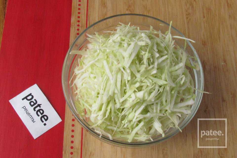 Белокочанную капусту тонко шинкуем.
